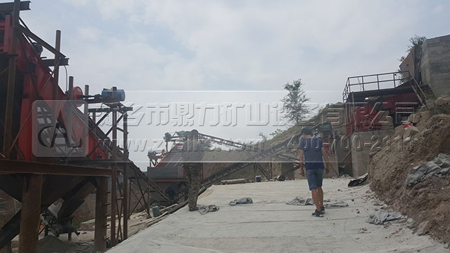 從生產(chǎn)現(xiàn)場(chǎng)我們可以看到,此條日產(chǎn)1500噸砂石料生產(chǎn)線部都是選用我們公司的設(shè)備,原料和成品料之間部都是用皮帶輸送機(jī)傳輸?shù)模a(chǎn)流程是流暢,可以自動(dòng)化的將成品料生產(chǎn)出來(lái),減少了使用額外附加設(shè)備的幾率。